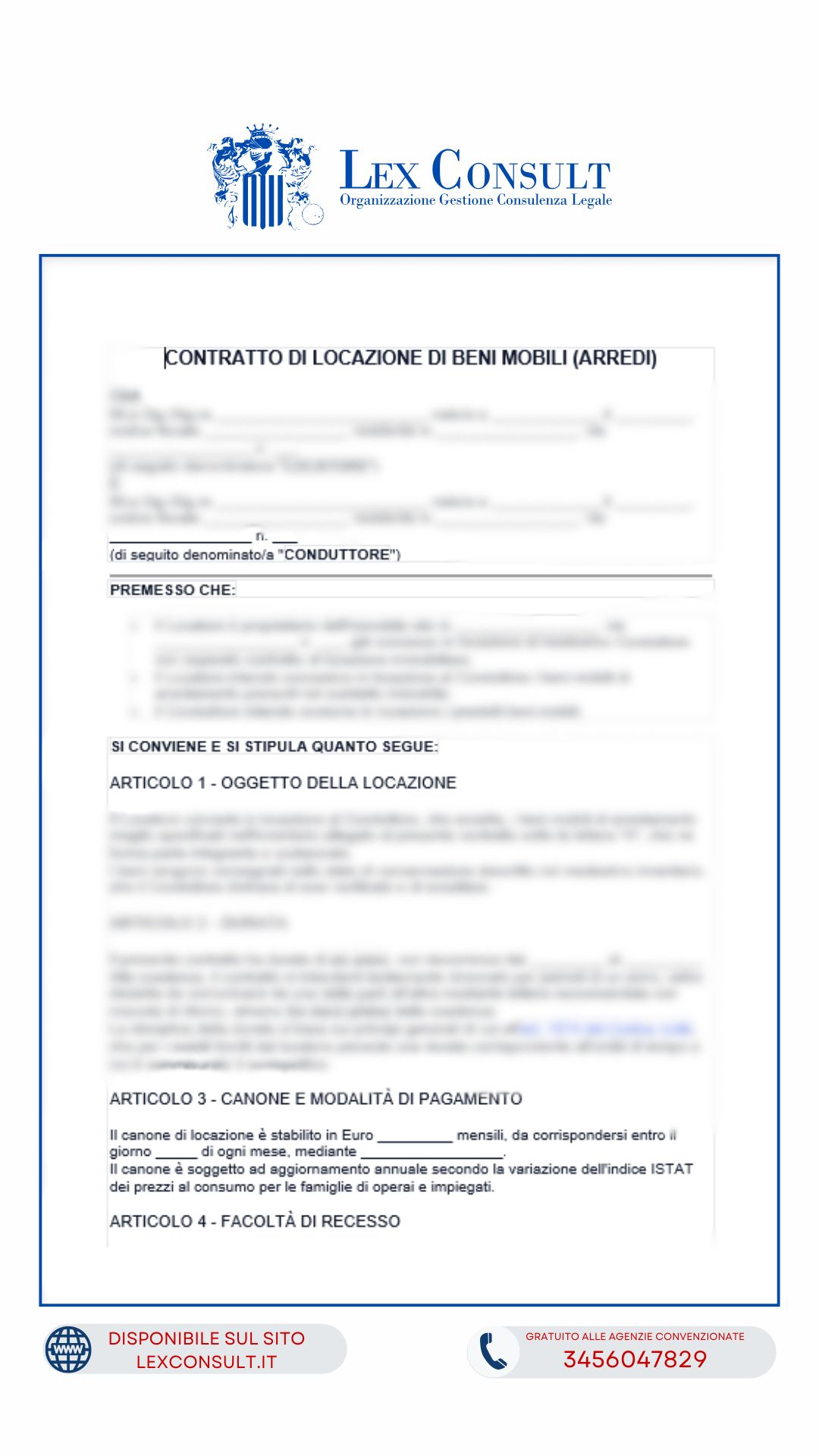 MODULO CONTRATTO DI LOCAZIONE DI BENI MOBILI ARREDI IMMOBILE LOCATO.