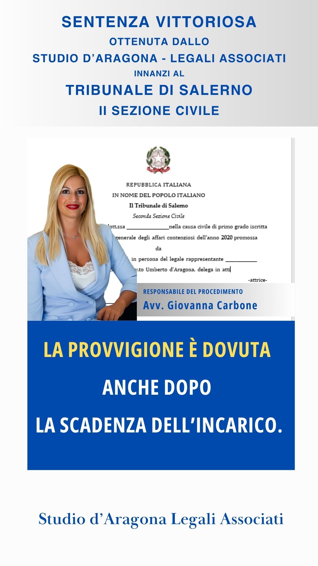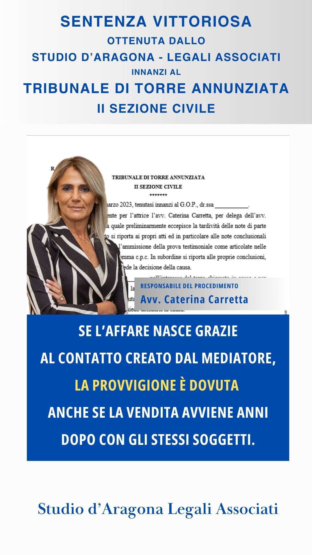 LA PROVVIGIONE E' DOVUTA ANCHE DOPO LA SCADENZA DELL'INCARICO - SENTENZA VITTORIOSA STUDIO D'ARAGONA - LEGALI ASSOCIATI - OTTOBRE 2025.